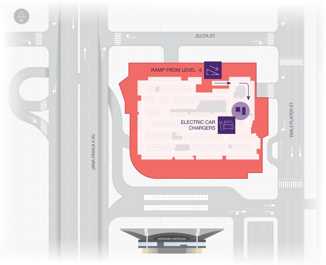 Using an electric scooter requires what we sometimes need too: recharging the batteries. At Lumen, you will find a chargers on the Emilia Plater St. side, between the underground parking entrance and the doorway to the building.